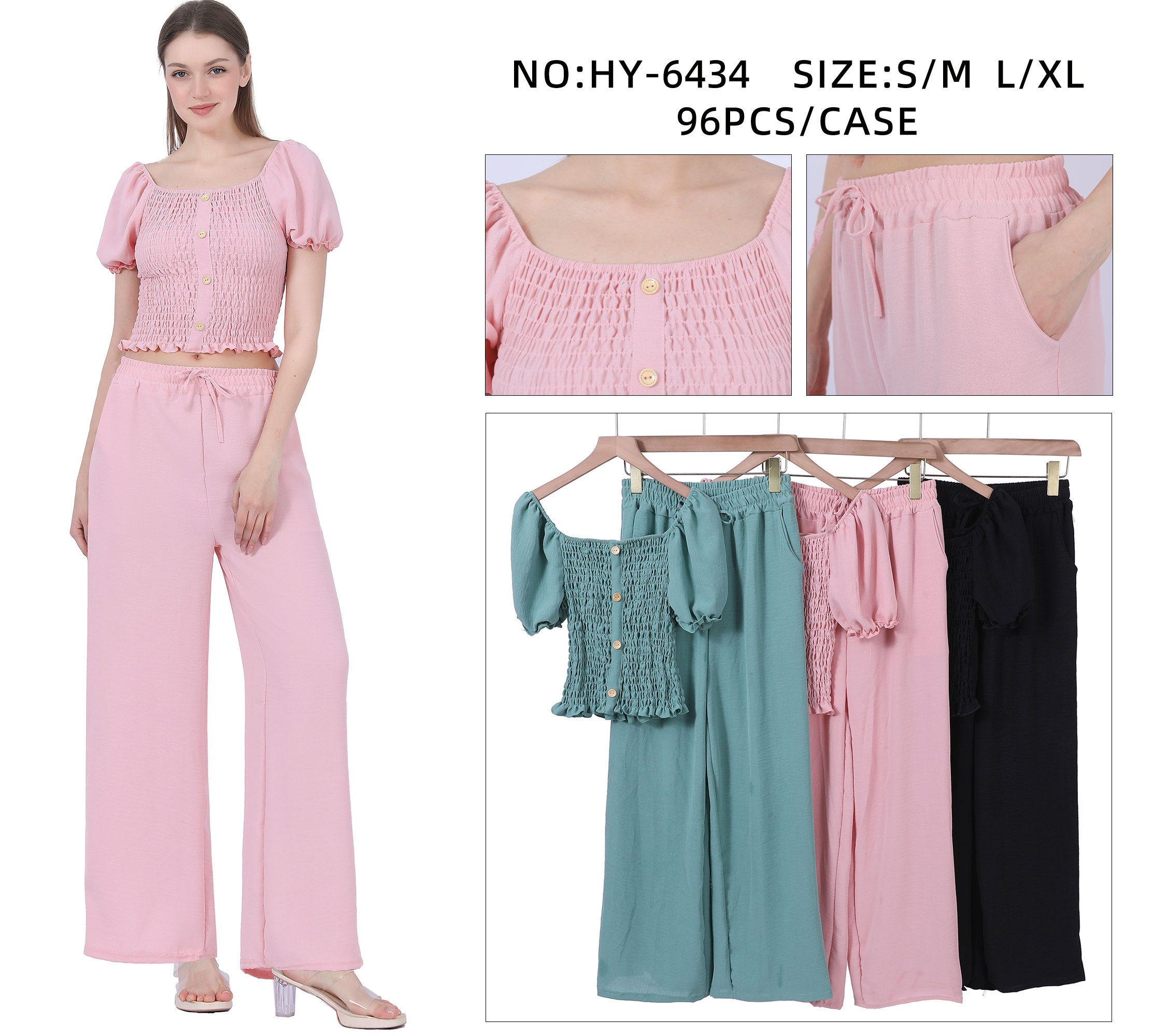 Lady's 2PCs Set Short Sleeve and Pants One Dozen Wholesale Mix Colors and Mix Sizes