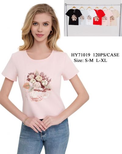 Lady’s Short Sleeve Fashion T-Shirt One Dozen Wholesale Mix Colors Mix Sizes