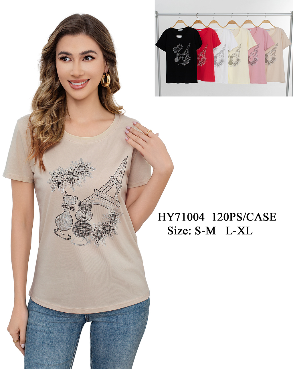 Lady’s Short Sleeve Fashion T-Shirt One Dozen Wholesale Mix Colors Mix Sizes