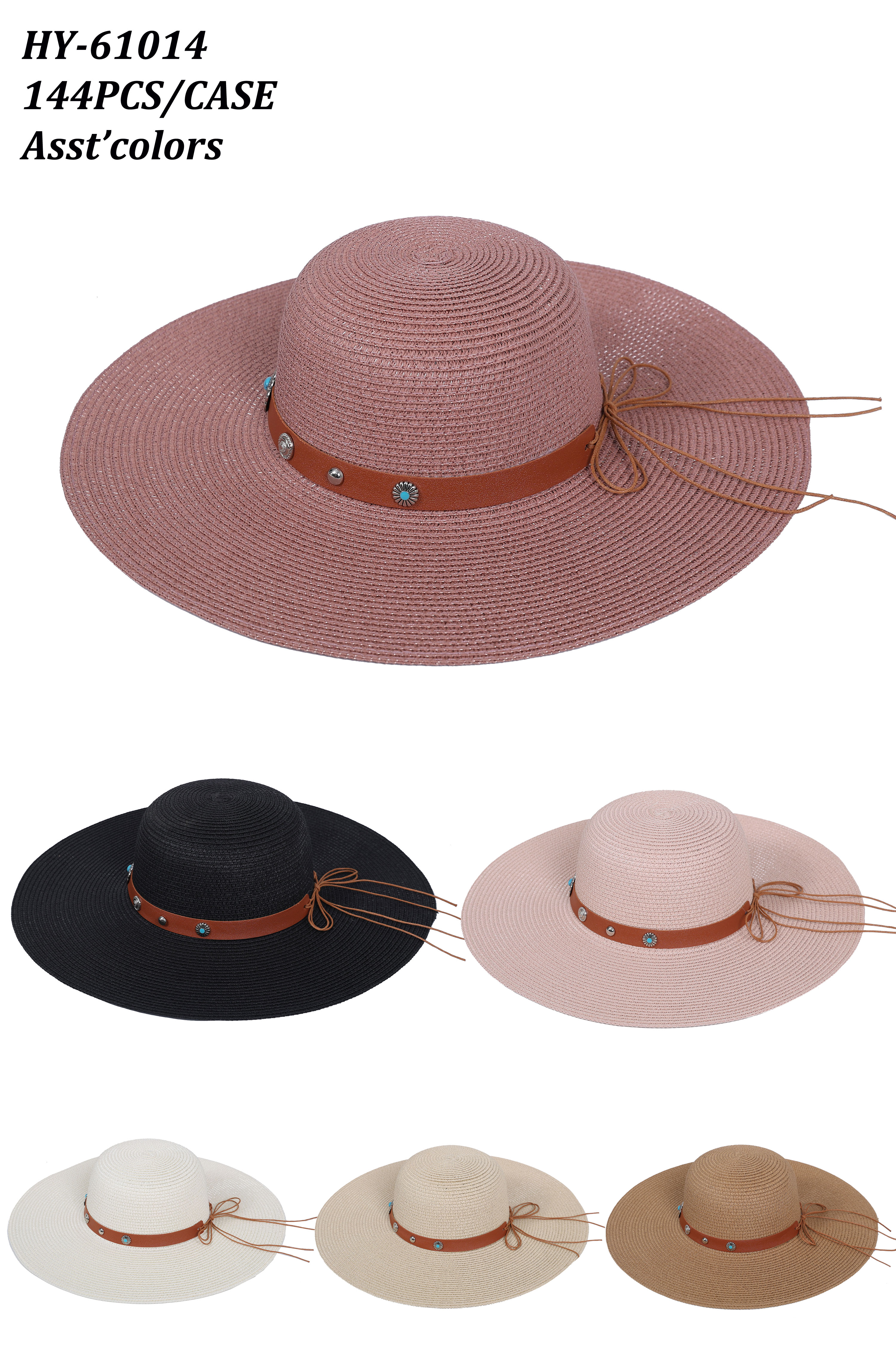 Women's Straw Floppy Hats Wide Brim One Dozen Wholesale Assorted Colors