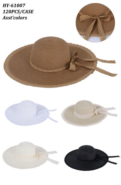 Women's Straw Floppy Hats Wide Brim One Dozen Wholesale Assorted Colors
