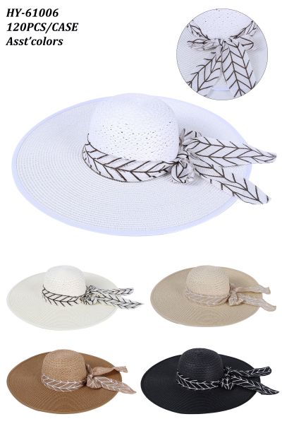 Women's Straw Floppy Hats Wide Brim One Dozen Wholesale Assorted Colors