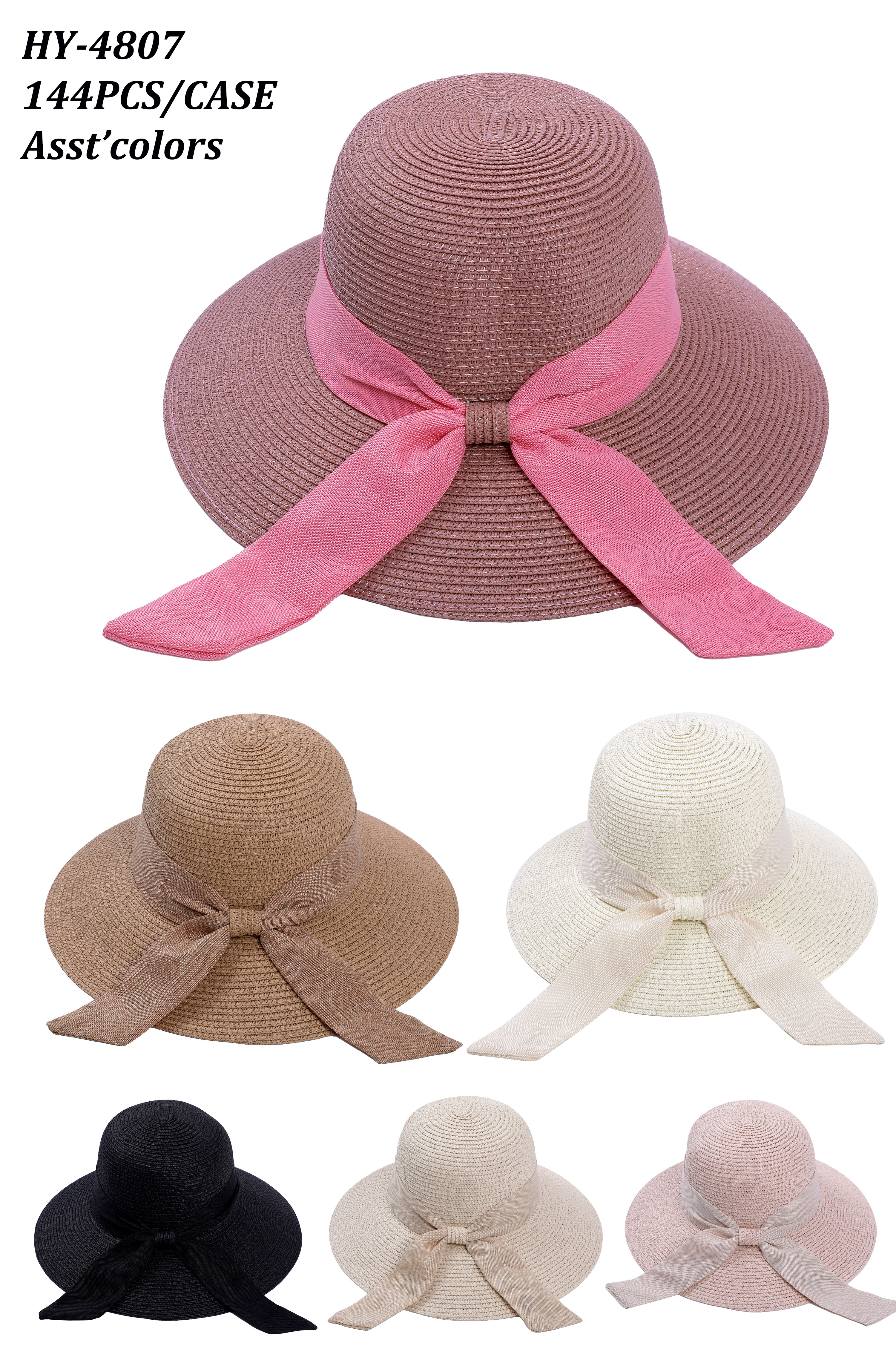 Women's Straw Floppy Hats Wide Brim One Dozen Wholesale Assorted Colors