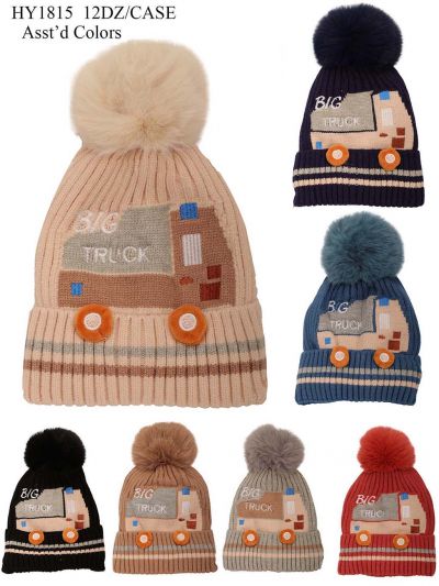Kid's Winter Knitted Hat with Faux Fur One Dozen Wholesale Assorted Colors